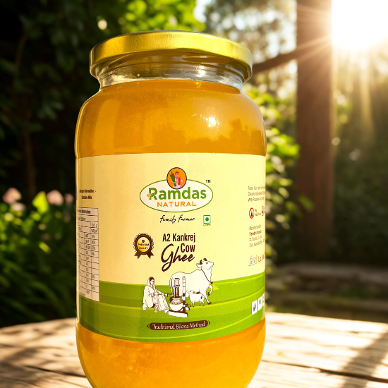 Our flagship product, A2 Kankrej Cow Ghee, is prepared using the Bilona method, ensuring every drop carries purity, nutrition, and the blessing of our desi cows. We also offer other natural products like Desi Jaggery, Rock Salt, Turmeric Powder, and Peanut Butter, all prepared without chemicals or preservatives.